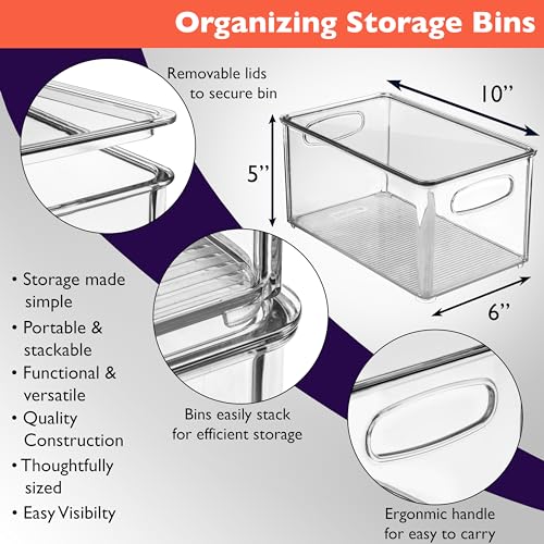 10" x 6" x 5" Clear Plastic Storage Bins with Lids