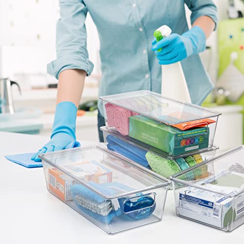 - PORTABLE & STACKABLE – Built-in, easy-grip side handles and lids make it easy to transport from place to place. These plastic storage bins are perfect for pantry organization and storage or kitchen organization. These clear storage bins are great for anywhere in your home.